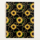 Un planificateur avec un motif élégant et élégant. Joli tournesol jaune et feuilles verts entourés de fines chaînes d'or. Arrière - plan noir.
