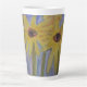 Des tournesols jaunes profonds sont dressés dans un jardin de chalets. Les pétales jaunes dansent contre le bleu azur d'un ciel d'été. L'association saisissante des couleurs crée un design floral à l'aquarelle charmant.