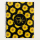 Un motif de tournesols jaune vif sur arrière - plan noir avec un monogramme et prénom.