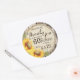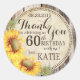 Fleurs de soleil et planches de bois d'anniversaire rustique merci design étiquette.