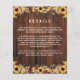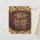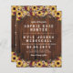 Rustique deux en un faire-part de mariage à budget imprimé sur papier plus fin avec tournesol, et fleurs en roux et bordeaux, et baies et sprigs contre un imprimé de bois chaud. Ajoutez vos noms et votre libellé de faire-part de mariage dans les polices rustiques. Au verso, ajoutez les détails de votre mariage tels que les logements, le site Web, la façon de RSVP ou tout ce dont vous avez besoin.