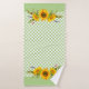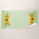 Ce design de campagne/ferme a de beaux bouquets de tournesol aquarelle sur un arrière - plan en damier vert pastel.