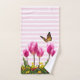 Cette jolie serviette de main de la saison printanière présente des fleurs de tulipes roses et un papillon. Achetez cette serviette pour vous-même ou offrez-la en cadeau à cette personne spéciale. Utilisez cette serviette tout au long de la saison printanière et c'est parfait pour la fête de Pâques.