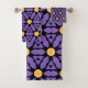 Motif décoratif, hexagones en jaune, noir et violet. Un petit point rose au milieu du jaune.
