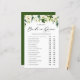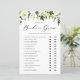 Devine qui l'a dit. Était-ce la mariée ou le marié ? | Ajoutez cette amusante et ludique douche nuptiale He Said She Said carte de jeu à votre événement. Cette carte de jeu personnalisable Bride ou Groom présente des illustrations d'aquarelle de fleurs blanches et de verdure. Personnalisez en ajoutant vos questions. Cette carte de jeu pour deviner la nage à fleurs blanches est parfaite pour les douches nuptiales hivernales et printanières et les wedding showers.