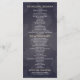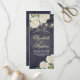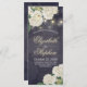 Programme de mariage Cartes en rack Modèles - Elégantes fleurs d'Hydrangée blanche et lumières à cordes sur Vintage Navy Blue Floral Linen Arrière - plan. Un design parfait pour votre grand jour. Tous les styles de texte, couleurs, tailles peuvent être modifiés selon vos besoins !