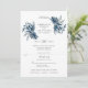 Des fleurs d'indigo bleu qui encadrent les noms des couples d'une manière élégante et décorative. La carte de réponse est une carte coupée, avec choix de repas et avec l'adresse de retour pré-imprimée. Une solution moderne tout en un, pour empêcher la carte rsvp fermée de se retrouver accidentellement sous le réfrigérateur. Au verso de l'invitation il y a une information facultative Détails. *Le design peut être personnalisé avec différentes polices, couleurs ou types de papier.