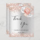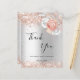 Un carte de remerciements pour un 50ème anniversaire (ou tout âge). Un arrière - plan faux argenté. Décoré de fleurs et de confettis d'or et de blanc rose. Sur le devant, un script écrit à grande main et le texte : Merci, votre texte, titre et une date. Retour : personnalisez et ajoutez Votre note de remerciement et votre nom.