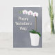 Illustration de style peinture Gouache d'un plante d'orchidées avec 3 grandes fleurs d'orchidées et un tas de bourgeons d'orchidées vertes dans un grand pot blanc. "Heureuse Sainte-Valentin" dans une police blanche avec une ombre est écrit à gauche du plante en pots. Arrière - plan est un moyen texturé gris. Cette carte florale élégante a une zone vierge sur la casserole blanche pour tous les messages manuscrits mignons pour une touche personnelle! Cette carte est vide à l'intérieur, vous pouvez écrire votre propre message à la main — également idéal pour les magasins de détail.