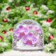 Oeuvre captivante avec des fleurs d'orchidées roses ornées de gouttes de bois, encadrées dans un motif joyeux. Parfait pour les thèmes de l'élégance, de la beauté de la nature et des inspirations de design floral.