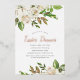 Des invitations à dîner de Pâques sur mesure abordables avec une élégante bordure florale peinte aux accents de papier peint blanc, vert et or. Personnalisez le modèle avec les détails de votre événement ou utilisez les outils de conception pour customiser le texte, choisissez les couleurs arrière - plans et modifiez les polices pour créer votre propre conception d'invitation de fête de Pâques unique. Le côté inverse comporte un joli arrière - plan vert sage ou utilisez l'espace pour ajouter du texte ou des photos supplémentaires si nécessaire. Ce magnifique design floral neutre est parfait pour le printemps.