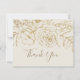 Cette carte de remerciement couleur crème aux motifs floraux dorés est parfaite pour un mariage élégant. Le design bohème moderne présente un arrangement fantaisiste de fleurs, de feuilles et de motifs botaniques dessinés à la main avec une feuille d'or fausse sur fond crème. Personnalisez le dos de la carte plate avec vos noms et un message de remerciement. Vous pouvez également laisser la section du modèle de message de remerciement vierge pour écrire une note personnalisée et réfléchie à la main sur chaque carte après leur réception. Ces cartes peuvent être utilisées pour un mariage, une fête de mariage ou tout événement spécial.