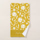 Des silhouettes blanches et élégantes de fleurs de cônes, de bourgeons et de feuilles sur arrière - plan jaune moutarde, conçues comme de l'aquarelle monochromatique par tanjica.