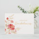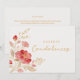 Conception de carte de condoléances à motif floral rouge clair et effet doré dans un angle.