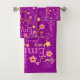 Nom typographique et rose fleur, jaune et blanc sur un modèle de serviette arrière - plan violet. La couleur Arrière - plan peut être changée si nécessaire actuellement violet. Un texte graphique personnalisé amusant et un ensemble de serviettes d'art floral. Personnalisez avec votre propre nom court, lit actuellement Emily pour l'aide sur la personnalisation et d'autres longueurs de nom s'il vous plaît contactez-moi. © Art et design par Sarah Trett pour www.mylittleeden.com
