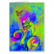 Design dynamique, élégant et artistique. Un papillon brillant et coloré avec une fleur magique, des fleurs et des fleurs stylisées.Aquarelle peinture avec de l'or et de l'argent en rose fuchsia jaune orangé, couleurs bleues turquoises..Belle carte pour Noël, occasions spéciales, Fête des Mères, anniversaires, mariage, et Saint Valentin.