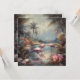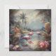 tableau botanique avec flamants roses dans l'eau entouré de palmiers et de fleurs tropicales