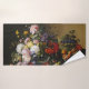 Fleurs et fruits vintages de Severin Roesen. Il s'agit d'une belle huile de morue sur toile peinte par l'artiste américain Severin Roesen représentant un bouquet de fleurs fraîches rouges, roses, jaunes et blanches colorées et aussi une variété de fruits comme l'ananas et la grenade.