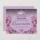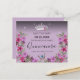 Belles étoiles faux brillantes sur la bordure supérieure. Design élégant et tendance avec typographie de script sophistiquée. Tout le texte est ajustable et facile à changer pour vos besoins de partie. Grand design élégant Quinceañera. Disponible en différentes couleurs. Belle tiara princesse avec arrangement floral. Papillon bleu avec au fond la bordure florale. Différentes couleurs arrière - plans disponibles.