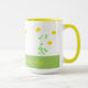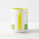 Tasse à café jaune design, rehaussée de vert, avec un imprimé marguerrier blanc frais. Le texte peut être personnalisé à votre propre message d'inspiration, ou le texte est amovible. Belle idée cadeau personnalisée personnalisée.