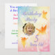 Un groupe de jolies petites fées de fleurs se pressent autour pour faire une belle invitation à la fête d'anniversaire