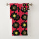 Noir et rouge, fleurs hippies, motifs floraux dans le tissu scandinave.