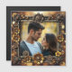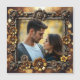 Aimant photo à thème Steampunk. Des engrenages en métal or vapeur, des fleurs et un arrière - plan en bokeh or. Téléchargez votre photo préférée dans la zone de personnalisation.