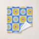 Serviette de bain vibrante avec un motif floral moderne rétro du milieu du siècle en bleu et jaune.