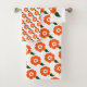 Cette serviette de bain est munie d'une simple fleur d'orange avec une seule feuille. Les fleurs sont disposées de telle manière que les feuilles forment un motif entre les fleurs. La salle de motifs ressemble à une courtepointe à l'ancienne. Cet ensemble a une aura rétro des années 60 des couleurs au motif. Une couverture correspondante est dans ma collection "Stay Warm, My Friend". Un oreiller à jetons assorti se trouve dans ma collection "Coussins décoratifs et Poufs".