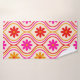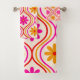 Apportez une tonalité vintage et audacieuse à votre salle de bain avec cette serviette de bain avec des fleurs rétro orange, rose et rouge sur des formes ovales vintages motif.