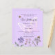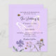 Un arrière - plan violet. Décoré d'abeilles et de fleurs sauvages peints en violet et rose et d'un grand papillon. Personnalisez et ajoutez vos noms et les détails. 1 feuille = 1 invite imprimé bord à bord.