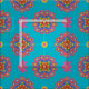 Floral Rangoli Motif avec tissu Pois avec répétitions sans coutures sur un Arrière - plan Turquoise que vous pouvez changer si vous le souhaitez. De la collection Posh & Painterly 'Rangoli', le motif original est tiré d'un collage de papier peint à la main par Judy Adamson.