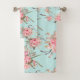 De magnifiques fleurs d'aquarelle rose vif fleurissent contre un arrière - plan bleu clair sur ce somptueux ensemble de serviettes. Voir mon magasin pour les accessoires correspondants.