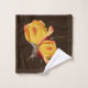 Joli rosebud jaune avec orange met en valeur la fleur sur un motif d'art floral arrière - plan foncé par Susan. Visitez Smilin' Eyes Treasures pour voir plus d'images de fleurs et de photographies de la nature.
