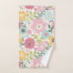 Fleurs roses, bleues, jaunes, design floral moderne sur un ensemble de serviettes de bain. L'ensemble comprend une serviette de bain, une serviette de toilette et un gant de toilette. Ceux-ci peuvent également être achetés séparément.