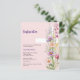 Arrière - plan rose vif, avec une grande croix blanche ornée de fleurs roses et violettes. Personnalisez et ajoutez le nom et les détails. 1 feuille = 1 invite imprimé bord à bord.