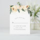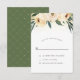 Un magnifique design de RSVP présentant une typographie élégante et une bordure de fleurs aquarelles roses. Derrière les fleurs, il y a une image de confettis dorés. Ces cartes se retournent sur un motif blanc simple sur fond vert.