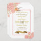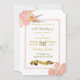 Invitations vintages aux mariages d'oiseaux et de fleurs roses et d'or en ajoutant vos informations de mariage dans la zone de personnaliser.