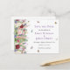 Élégante et fantaisiste, cette carte postale "save the date" de mariage présente un beau design de fleurs aquarelles roses et violettes comprenant des roses, des tulipes, de la lavande et du feuillage d'eucalyptus avec des papillons aux couleurs vives et des abeilles bourdonnantes qui volent autour.