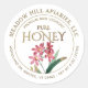 Le design central présente une illustration fleur sauvage rose vintage. Les mots "pur" et "miel" sont imprimés dans un dégradé d'or métallique "ciselé". Personnalisez avec votre nom, adresse et description du miel (brut, embouteillé à la main, source unique, etc.). Incluez également votre poids net miel. Conversions de poids net miel : 8oz (227g), 12oz (340g), 16oz (454g), 32oz (907g), 5lb (2,27kg). Un arrière - plan blanc avec cercle doré entoure le motif central.