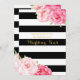 Elégante invitation à renouveler vow mariage en rayures noir et blanc motif avec vintage aquarelle fleurs rustiques.