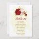 Fleurs romantiques rouges et blanches avec carte de sièges mariages botaniques feuille or Les détails de la parties scintillant sont simulés.