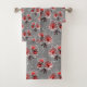 Fleurs rouges sur un arrière - plan gris avec pois blancs.