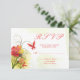 Ce chic 3.5x5 mariage RSVP réponse carte à plat a un design floral rouge et vert aquarelle avec deux papillons volant en bas à gauche. Au fond, il y a une silhouette gris et molle de quelques fleurs de nénuphars. Dans l'arrière - plan, il y a un look doux vert en détresse. Sur la droite, vous pouvez facilement customiser les informations de mariage RSVP. À l'arrière, il y a un papillon rouge volant sur le côté gauche.