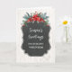 Salutation de saison pour la carte de Noël volontaire avec le design rustique de la campagne et feuillage d'hiver avec des poinsettias.