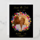 Ajoutez une touche d'élégance bohème à votre mariage avec cette invitation "save the date" de mariage à 2 photos, Moderne Chic Bohème Élégant Couleurs Fleurs sauvages. Caractérisée par une véritable feuille d'or, des teintes roses, rouges, vertes et violettes, des fleurs botaniques inspirées des fleurs sauvages et des jardins rustiques à l'aquarelle avec une verdure subtile et une typographie moderne bohème sur fond sombre. Avec une typographie élégante et moderne, parfaite pour les mariages décontractés en plein air dans un jardin.