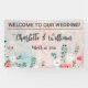 Bannière mariage Fleurs sauvages d'aquarelle conçus dans les tons pastel de rose et de vert turquoise, avec le texte : BIENVENUE À NOTRE MARIAGE, La mariée et la chambre prénom et Mariage Date. Pour personnaliser, insérez simplement vos détails dans notre modèle facile, en remplaçant l'exemple de texte. Assurez-vous de voir les Fleurs sauvages Mariage Watercolor pour les cartes et accessoires correspondants.