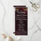 L'avant présente des bouquets fleurs sauvages aux couleurs chaudes de l'automne sur un arrière - plan bordeaux avec les détails du programme de la cérémonie mariage et un merci spécial. Les détails de la fête de mariage sont sur un arrière - plan en bois sur le dos. Ces programmes sont excellents pour le pays ou le mariage extérieur. Changer les polices peut créer un look plus élégant ou rustique. Conçu pour coordonner avec Rustic Fleurs sauvages & Ribbon Collection. Pour modifier les détails, cliquez sur "Personnaliser". Pour déplacer le texte ou modifier la taille, la police ou la couleur du texte, cliquez sur "Cliquez pour customiser plus loin"