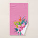 Ce magnifique ensemble de serviettes de salle de bain est créé avec un design botanique tropical comprenant un hibiscus, un oiseau de paradis, des fleurs et un groupement de feuilles de palmier qui ajoute une touche de beauté et de nature à tout décor de salle de bain.
