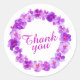 Aquarelle abstraite moderne violet viola / pansy wreath merci d'être venu ou de favoriser mariage ou occasions autocollants. Une partie du kit de papeterie mariage d'aquarelle couleur wreath. © Peinture et design d'aquarelle originale par Sarah Trett. www.sarahtrett.com pour www.mylittleedenweddings.com